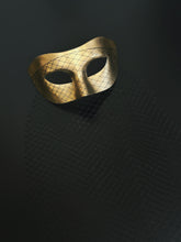 Regal and mysterious, this golden masquerade mask features sleek curves and a dramatic black netted veil for an alluring touch. Its minimalist elegance evokes old-world glamour with a seductive edge. Perfect for galas, masquerade balls, or any evening where intrigue is required.